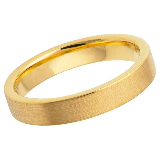 Brushed Polished Flat Pipe Yellow Gold IP Plated Tungsten Ring – 4 mm