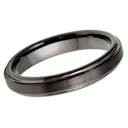 Gun Metal IP Brushed Center Tungsten Ring - 4mm