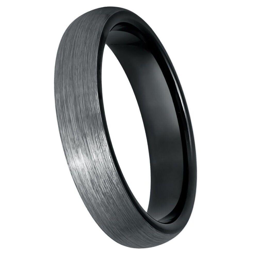 Domed Brushed Black & Gun Metal IP Plated Tungsten Ring - 4mm