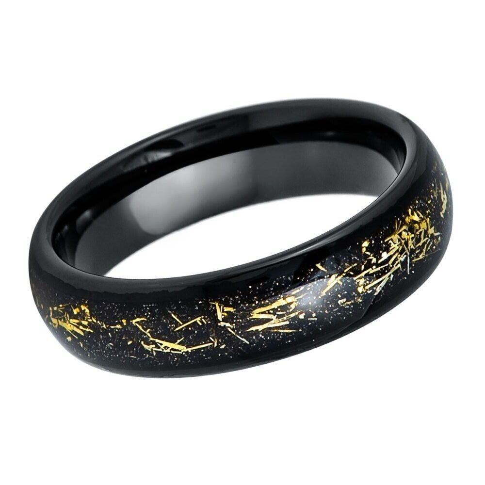 Yellow Meteorite Inlay Black IP Plated Tungsten Ring - 6mm
