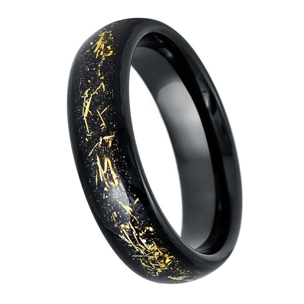 Make a Statement with our Yellow Meteorite Inlay Tungsten Ring - 6mm!