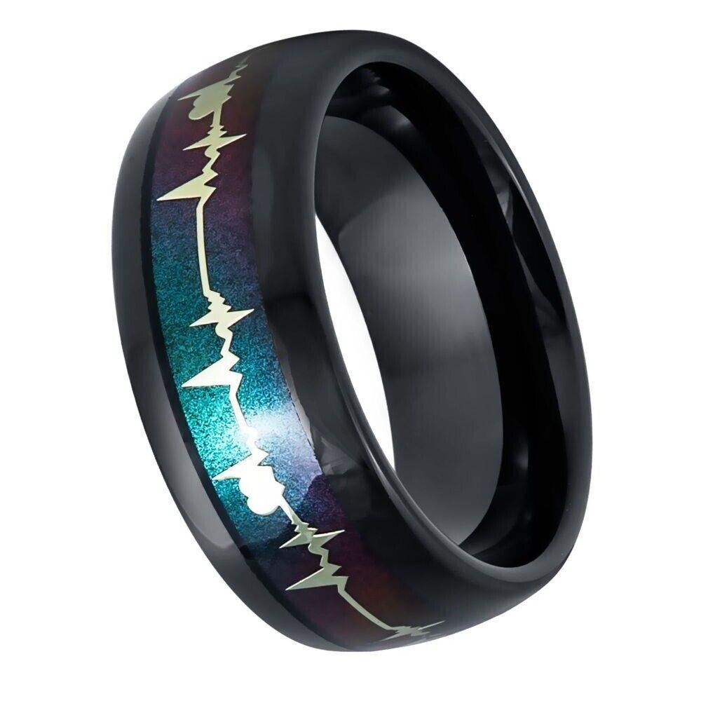 So why wait? Make a bold statement and show your unique style with our EKG Heartbeat Rainbow Gradient With Black IP Plated Tungsten Ring - 8mm today!