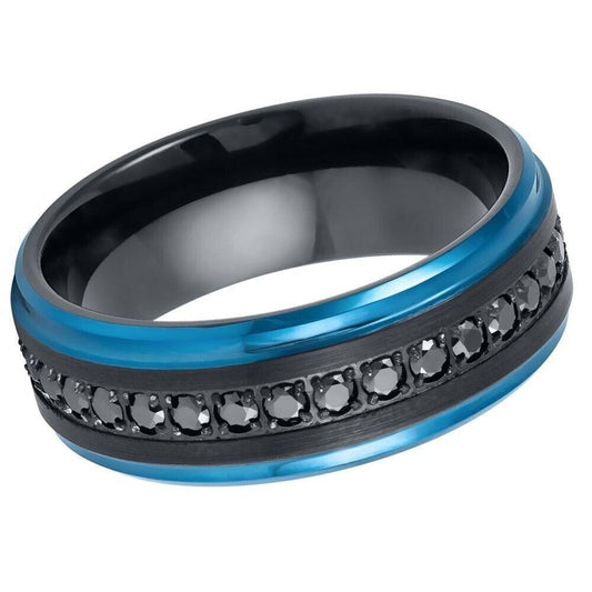Eternity Black CZ Blue Edges Black IP Tungsten Ring - 8mm