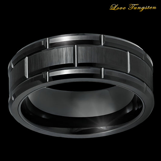 Brick Pattern Black IP Plated Tungsten Ring - 8mm | Stylish & Durable