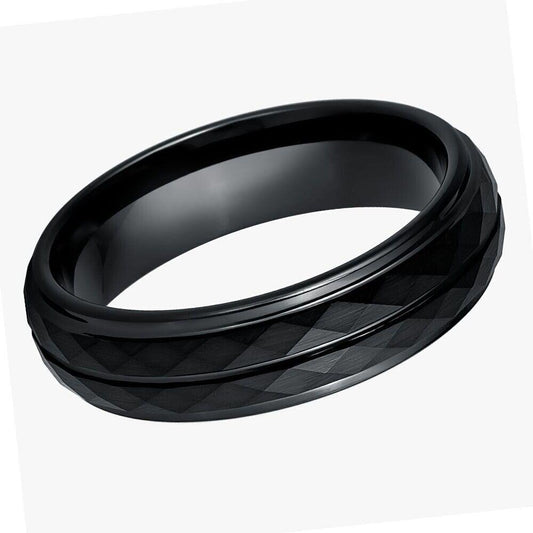 Diamond Shapes Black IP Faceted Finish Tungsten Ring - 6mm
