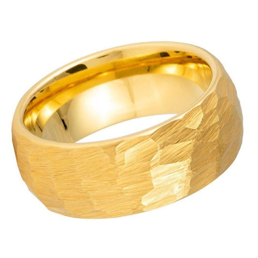 Domed Yellow Gold IP Hammered Finish Tungsten Ring - 8mm
