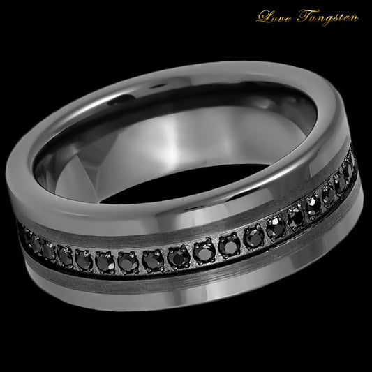 Prong-Set White CZ Eternity Black IP Tungsten Ring - 8mm