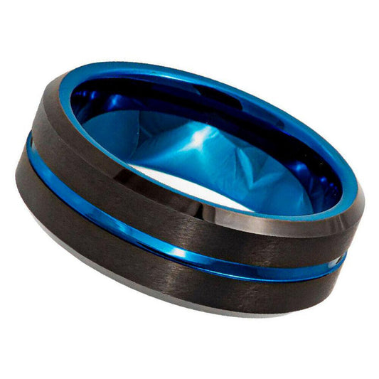 Dome Black IP Tungsten, Blue IP Center Groove Tungsten Ring - 8mm