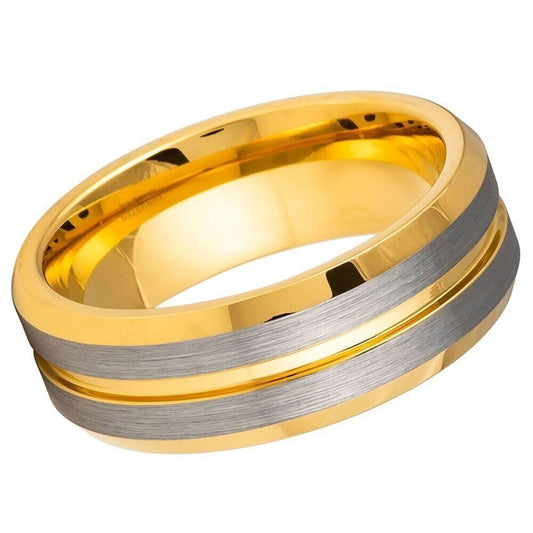 Grooved Center Yellow Gold IP Tungsten Ring - 8mm