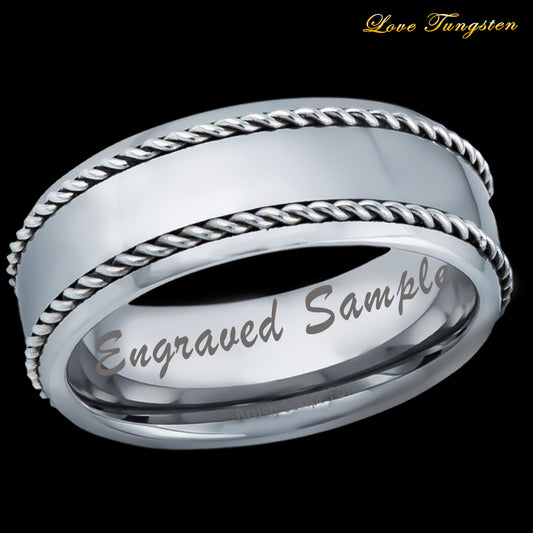 High Polished Domed Tungsten Ring with Rope Stainless Steel Inlay - 8mm | Love Tungsten