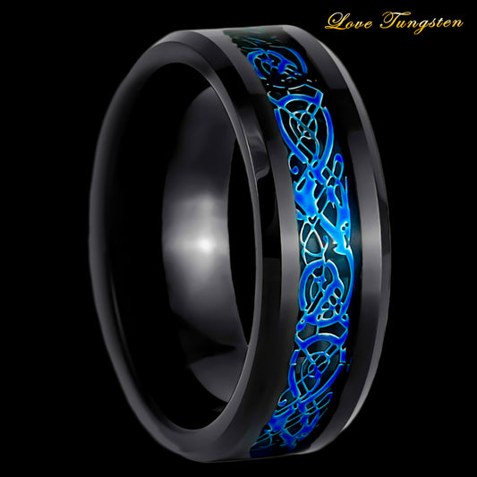 Twisted Knot Rope Inlay Blue IP Tungsten Ring - 8mm