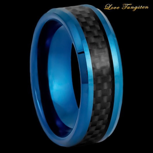 Black Outside, Blue Inside IP Plated Brushed Stepped Edge Tungsten Ring - 8mm