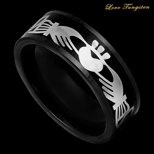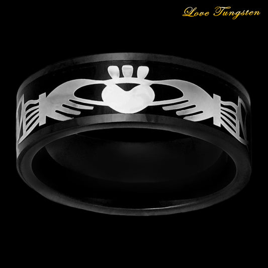 Brick Pattern Black IP Plated Tungsten Ring - 8mm | Stylish & Durable