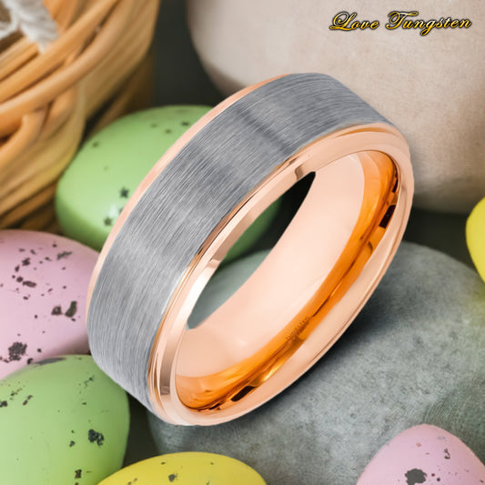 Rose Gold IP Gunmetal Center Brushed Tungsten Ring - 8mm | Elegant Design
