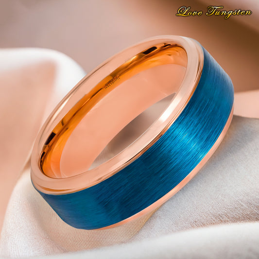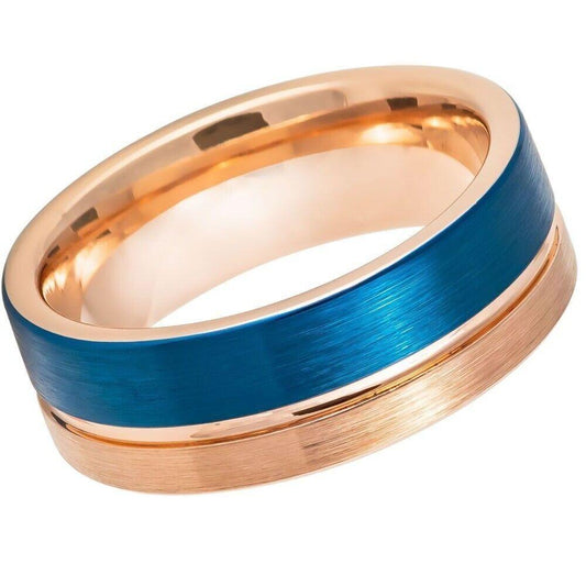 Two-tone Rose & Blue IP Plated Tungsten Ring - 8mm