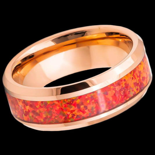 Red Fire Opal Inlay with Rose Gold IP Tungsten Ring - 8mm