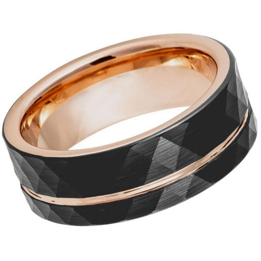 Rose Gold & Black IP Plated Faceted Groove Tungsten Ring – 8 mm