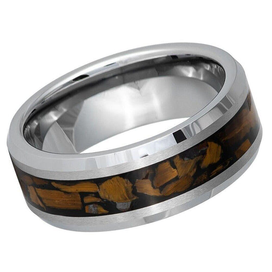 Silver Beveled Edge Tiger Eye Inlay Tungsten Ring - 8mm