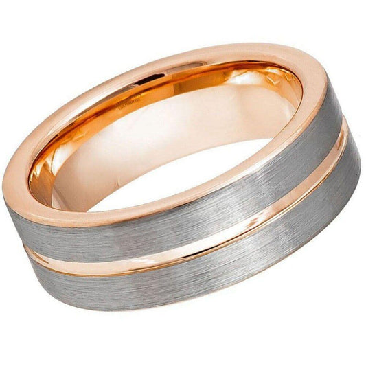 Two-tone Rose Gold IP Plated Pipe-Cut Tungsten Ring - 8mm