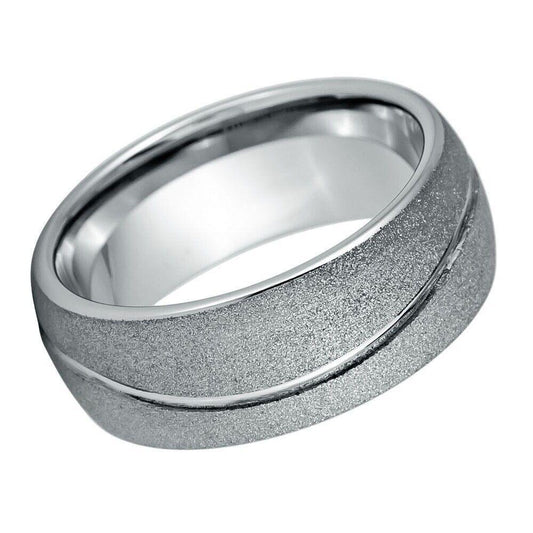 Unique Swirl Design Rough Stone Tungsten Ring - 8mm | Frosted Finish