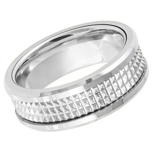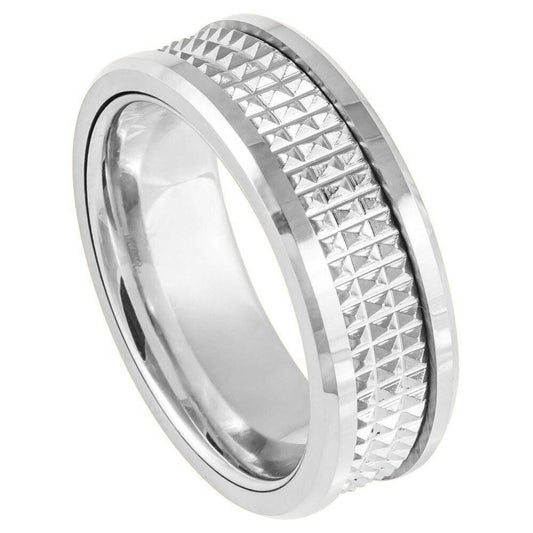 Pyramid Pattern Center 8mm Tungsten Ring with Polished Beveled Edges