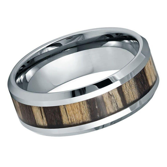Unplated Zebra Wood Inlay Tungsten Ring - 8mm