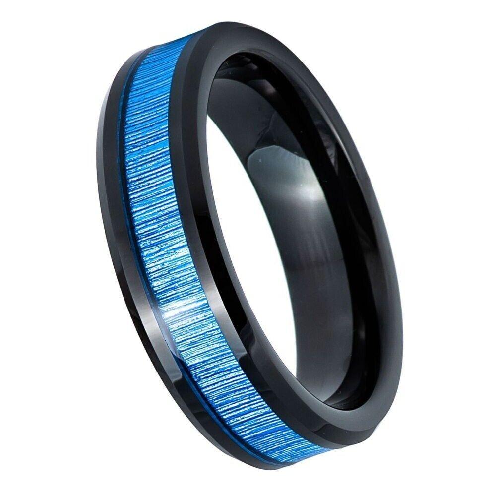 Elevate Your Style with Our 6mm Black IP Tungsten Ring: Simulation Bamboo Grain Fiber Inlay