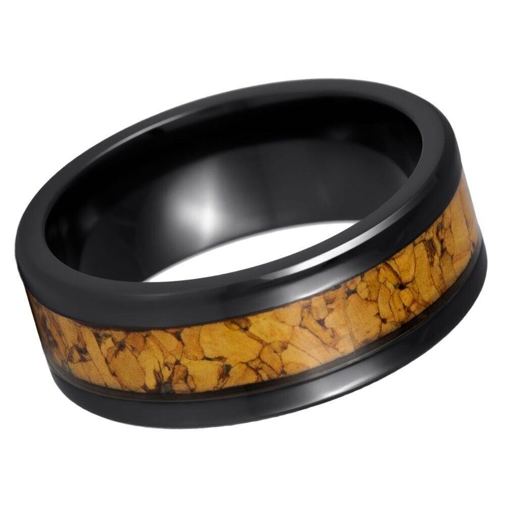 Discover the unique and stylish combination of black IP plating and natural cork in our 8mm Tungsten Ring. The black IP plating adds a sleek and modern touch, while the natural cork inlay brings a natural and rustic element to the design.