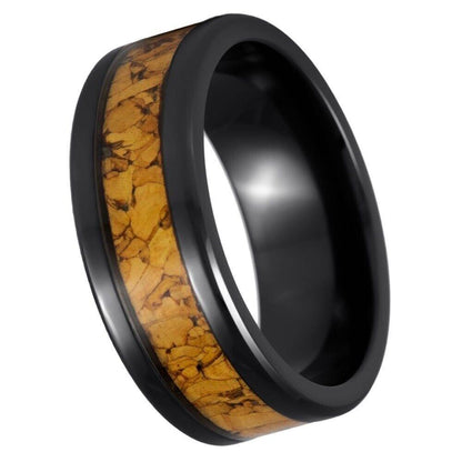 Experience the Unique Charm of our Black IP Cork Inlay Tungsten Ring - 8mm
