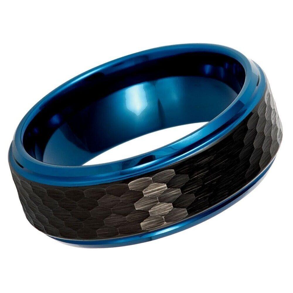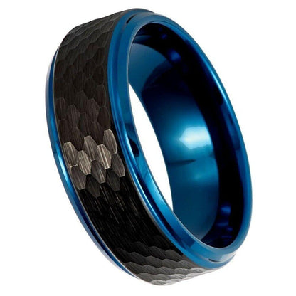 8mm Hammered Black and Blue IP Tungsten Ring - Durable Men's Wedding Band | Love Tungsten