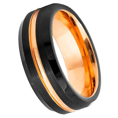 Make a Statement with Our 8mm Black & Rose Gold Plated Tungsten Ring