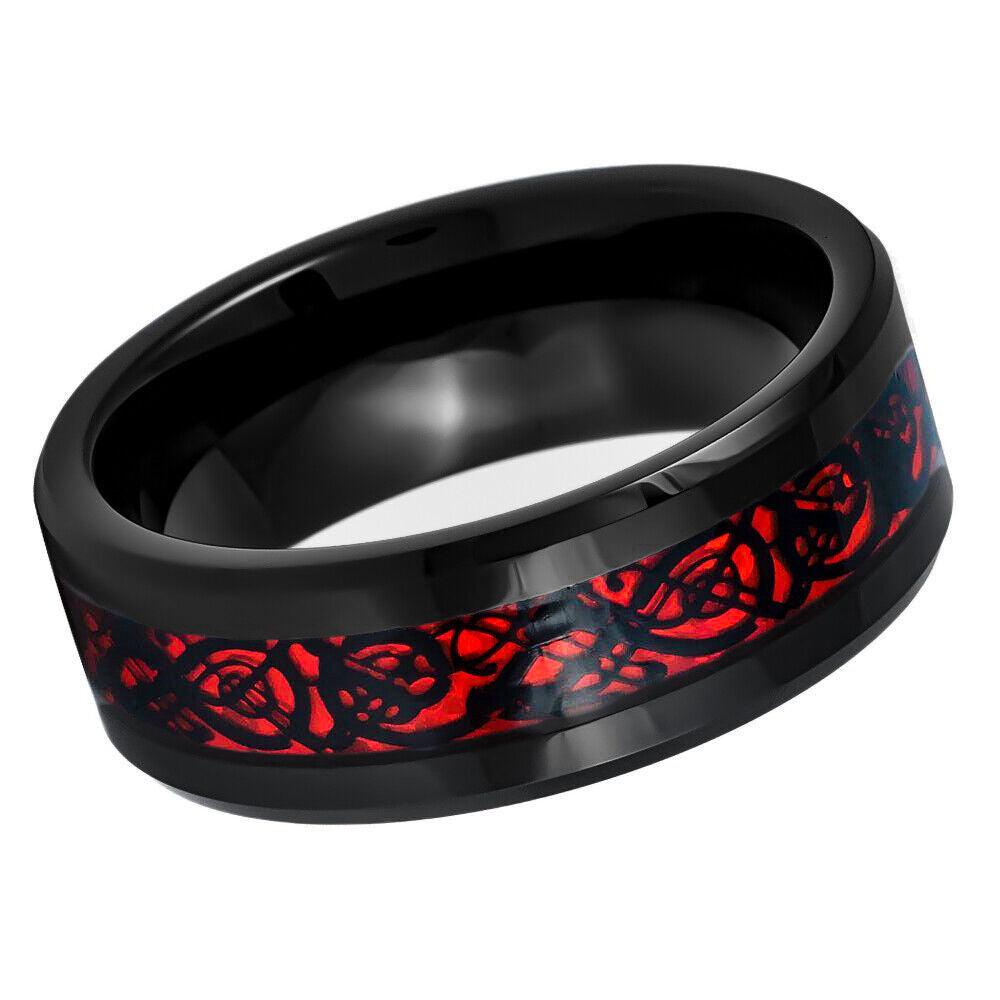 Celtic Dragon Gothic Cut-Out Inlay Tungsten Ring - 8mm - Black/Red - Men's/Women's
