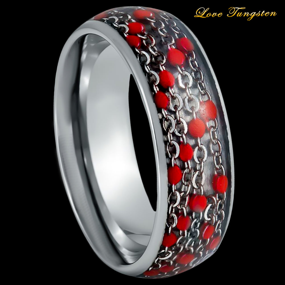 Make a statement with our Dome Ring Cable Chain & Red Beads Inlay Tungsten Ring - 8mm. Whether it's for a special occasion or everyday wear, this ring is sure to add a touch of elegance and sophistication to your style.