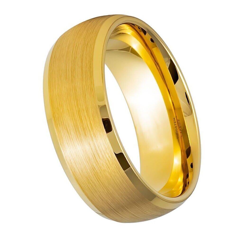 Men's Yellow IP Brushed Center Domed Tungsten Ring - 8mm