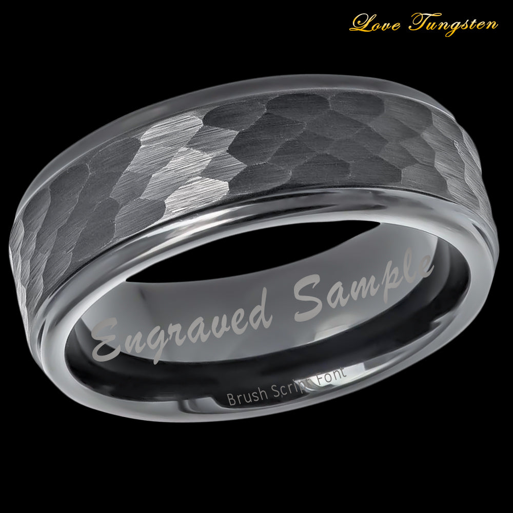 Elevate your style with our Gun Metal IP Plated Hammered Center with Stepped Edge Tungsten Ring - 8mm. This unique ring features a hammered center design and a gun metal IP plating, adding a touch of sophistication and rugged appeal.