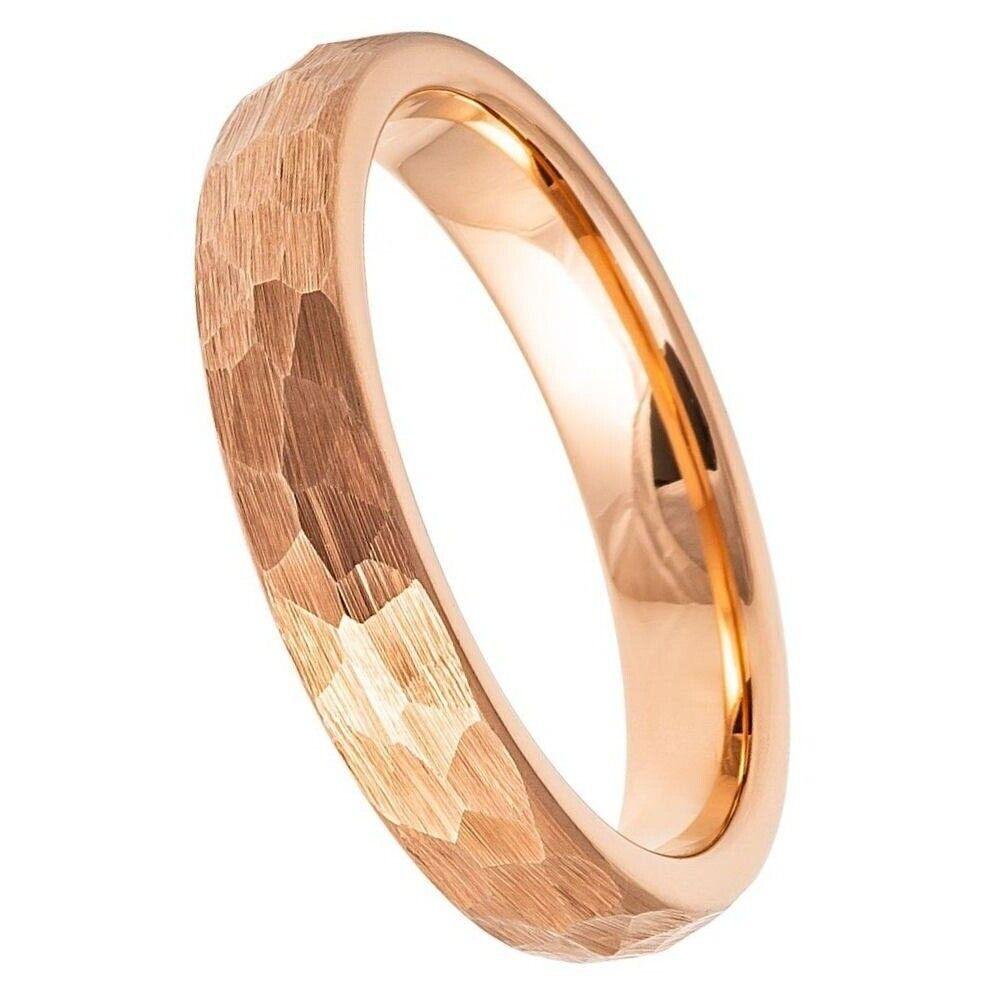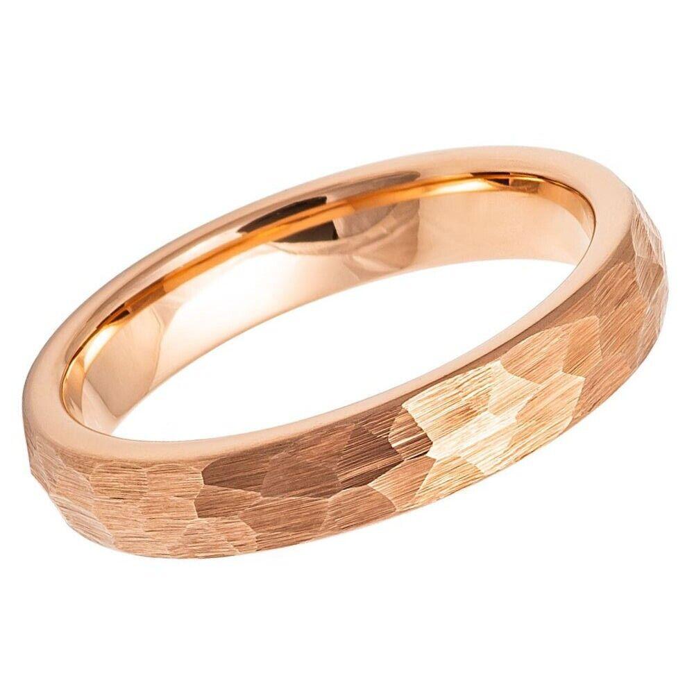 Add a Touch of Elegance with Our 4mm Rose Gold IP Hammered Brushed Domed Tungsten Ring
