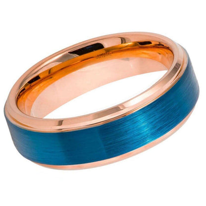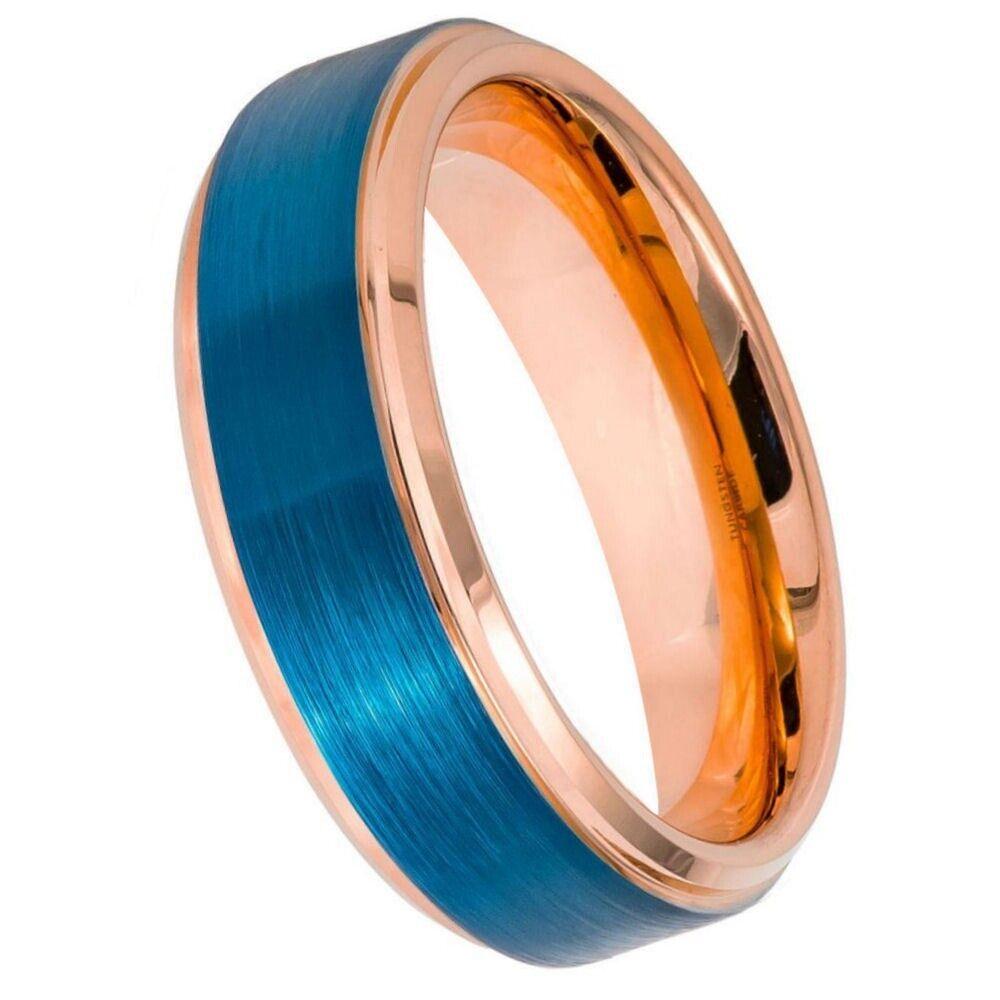 Two-tone Rose & Blue IP Stepped Edge Tungsten Ring - 6 mm