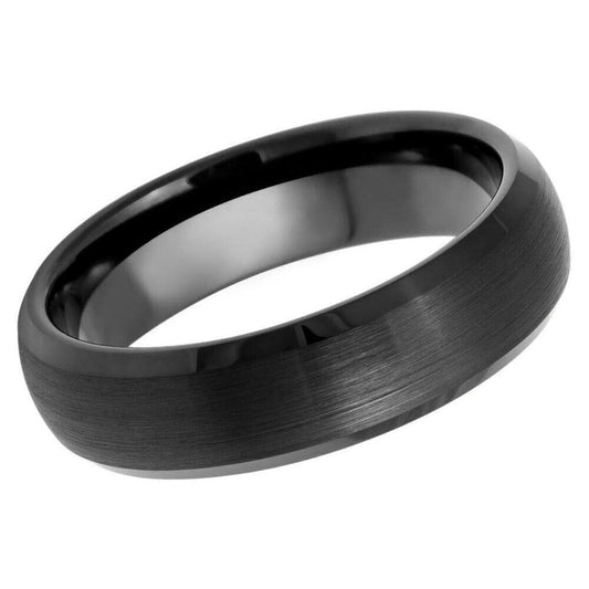 Gun Metal Beveled Edge Black IP Plated Tungsten Ring – 6 mm