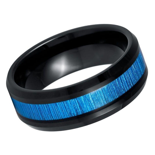 Reflective Grain Finish Stepped Edge Tungsten Ring - 8mm