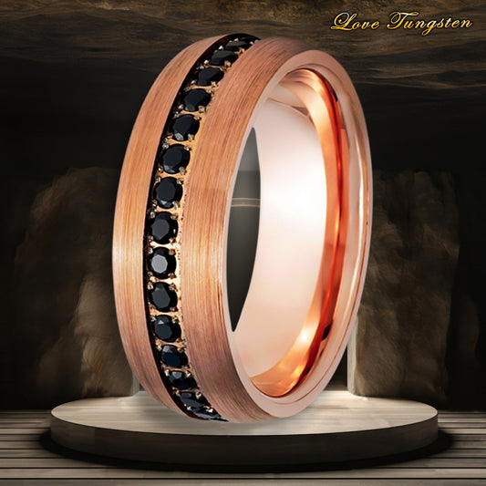 Black CZ Eternity Tungsten Ring Domed Rose Gold IP Plated - 8mm