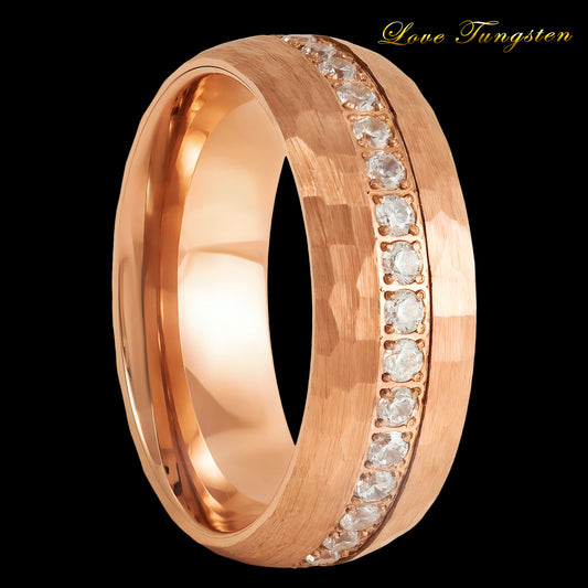Eternity Prong-Set White CZ Stones 8mm Rose Gold IP Tungsten Ring | Enduring Beauty & Style