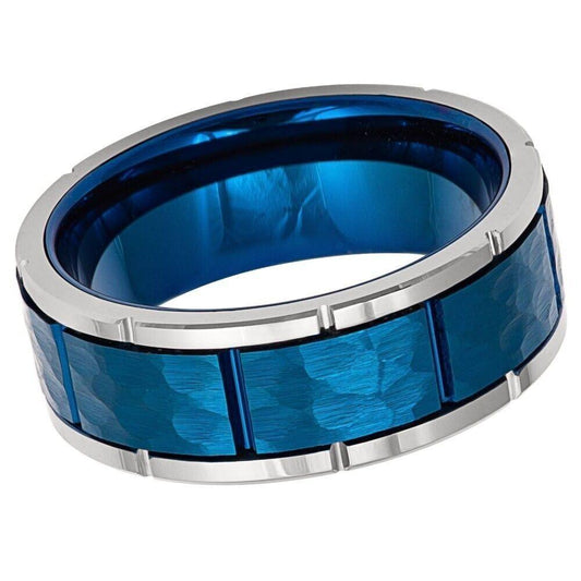 Cosmic Blue Synthetic Opal Inlay Tungsten Ring - 8mm | Celestial-Inspired Jewelry