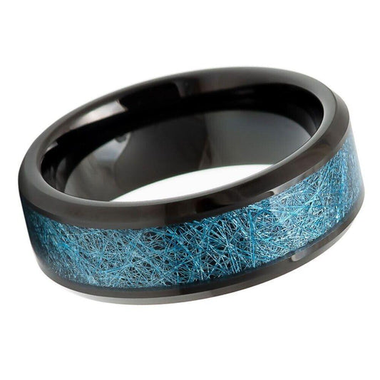 Blue Silk Thread Inlay Black IP Tungsten Ring - 8mm | Love Tungsten