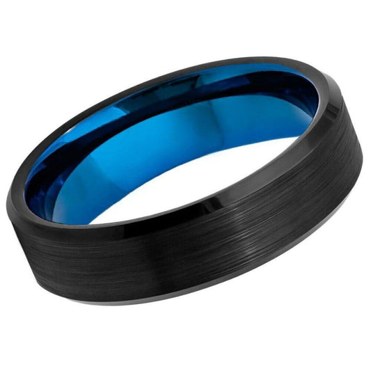 Brush Black Slick Inlay, Blue IP Plated Tungsten Ring - 6mm