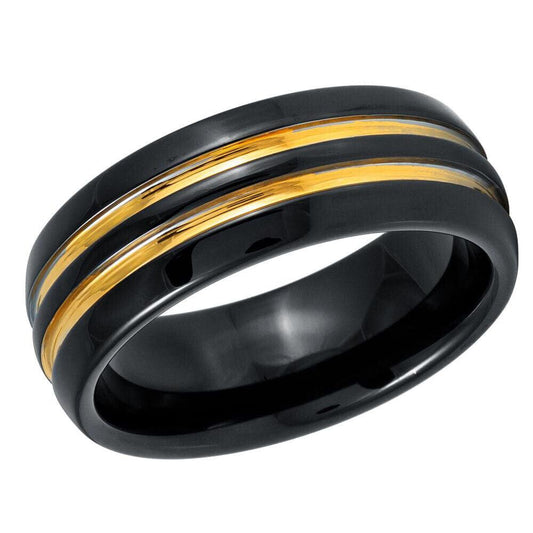 Bold & Stylish: Yellow IP Stripes Domed Black IP Tungsten Ring - 8mm
