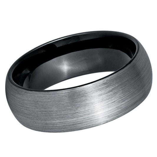 Domed Black & Gun Metal IP Plated Tungsten Ring - 8mm