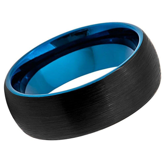 Domed Black Outside, Blue Inside IP Tungsten Ring - 8mm