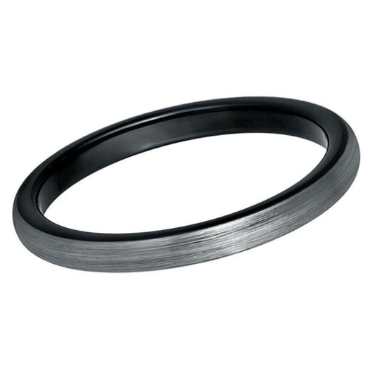 Domed Brushed Black & Gun Metal IP Tungsten Ring - 2mm