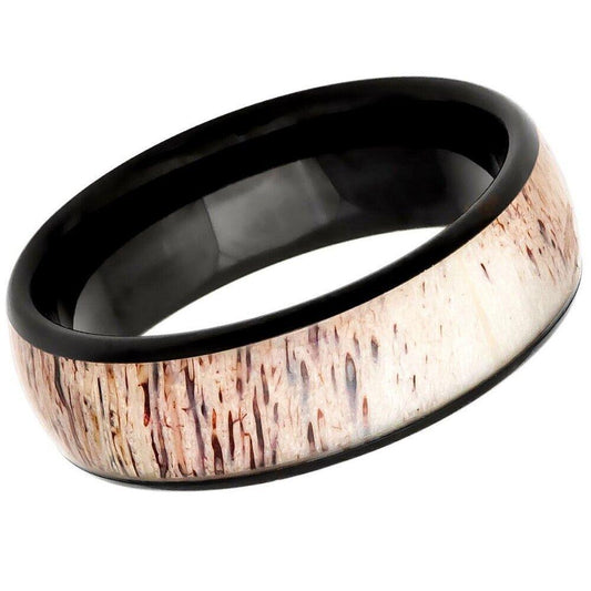 Domed Black IP Tungsten Ring with Deer Antler Inlay - 8mm