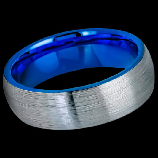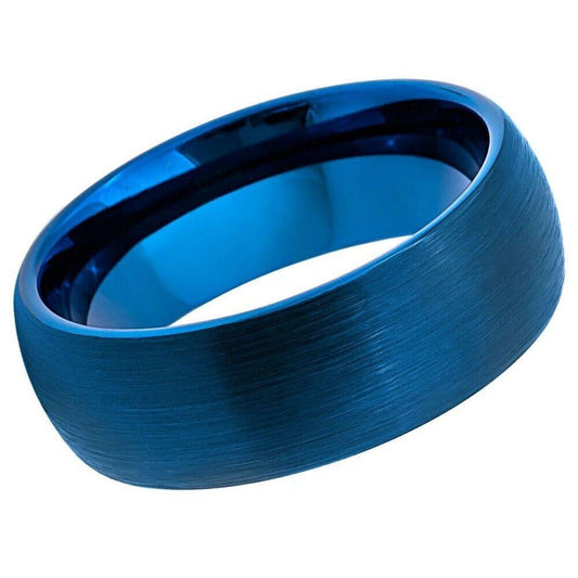 Domed Blue IP Plated Brushed Finish Tungsten Ring – 8 mm